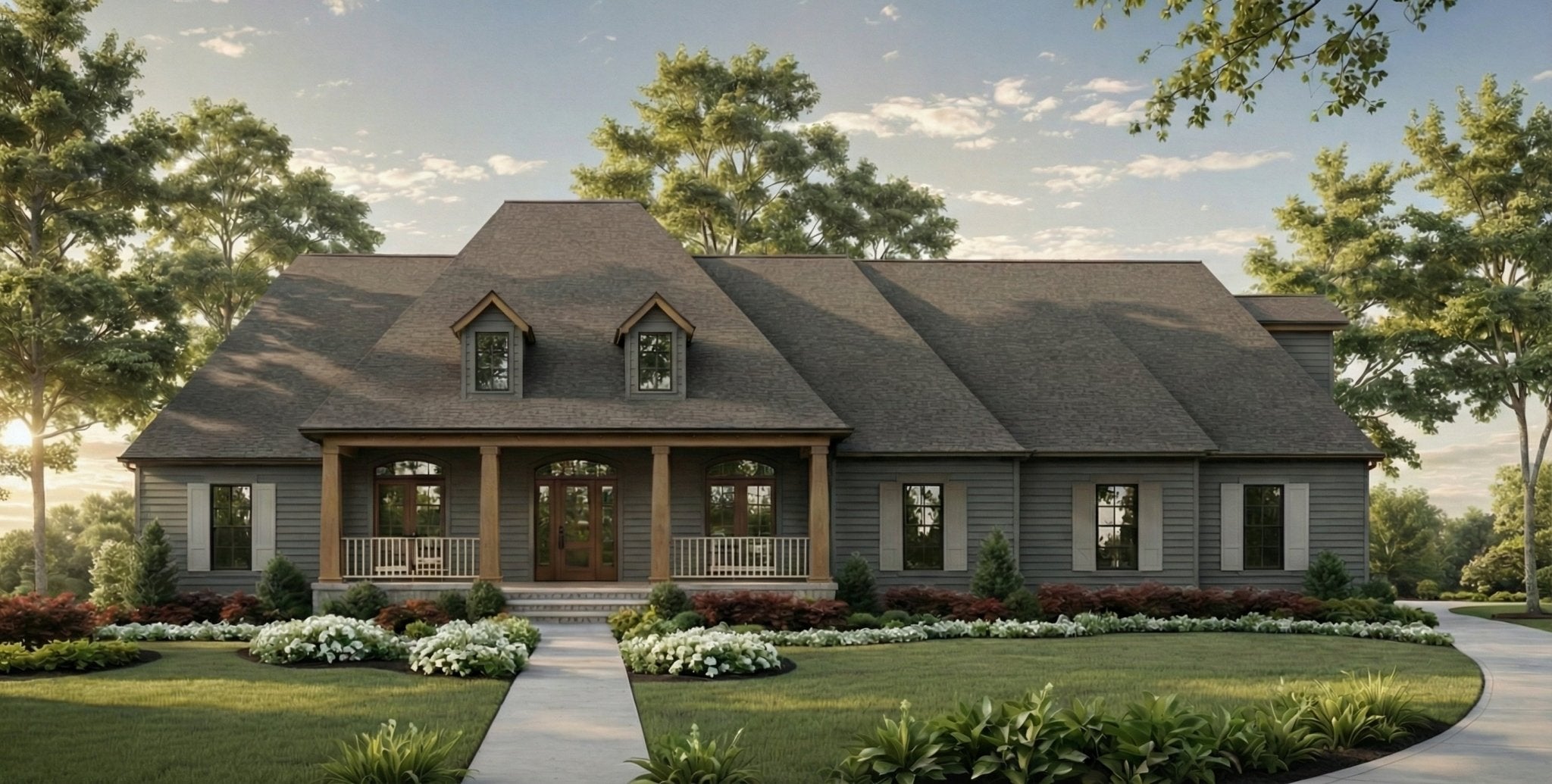 This thoughtfully designed home blends timeless Southern charm with modern livability, creating a perfect balance of comfort, function, and style. The welcoming front porch and classic dormered roofline deliver strong curb appeal, while the wide footprint offers a beautifully efficient single-story layout with room to grow.